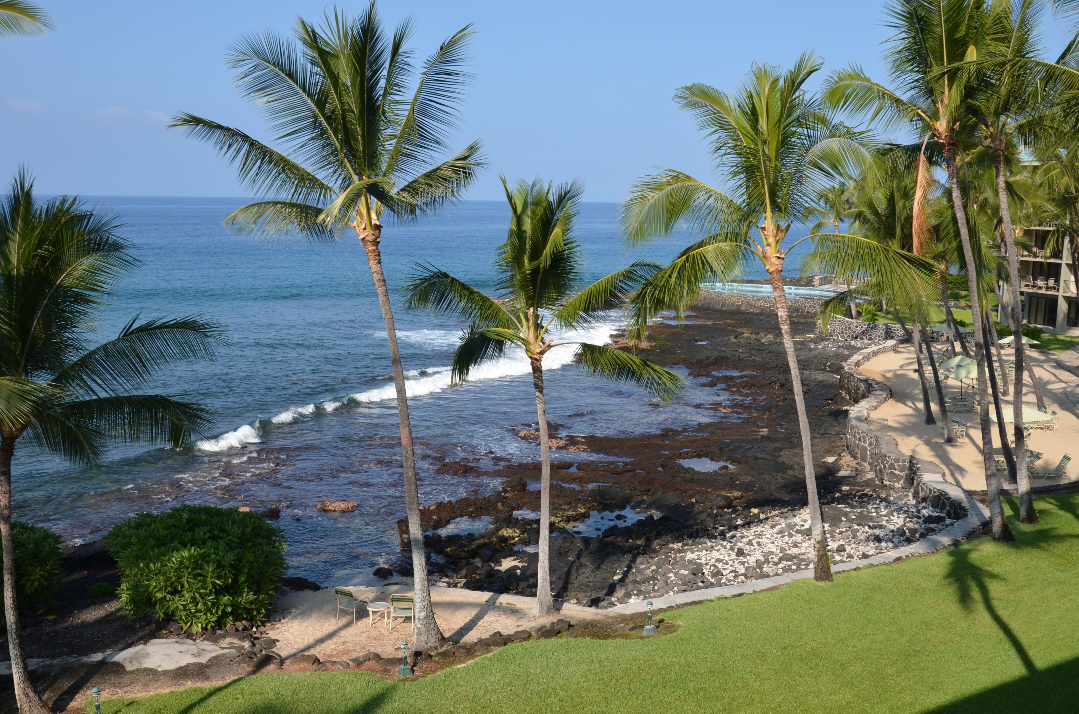 Seit gestern befinde ich mich in Kona, der Blick aus dem Schlafzimmer ist traumhaft: